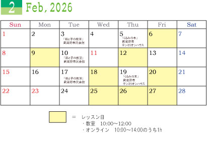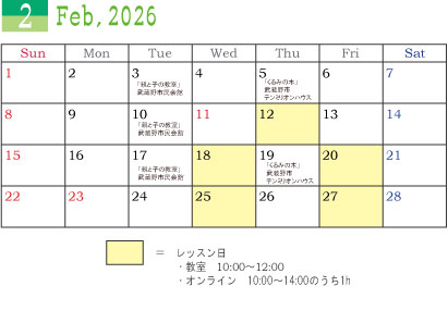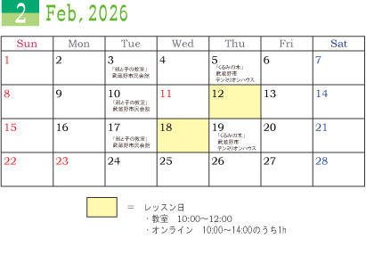 2月のレッスンスケジュールはこちら