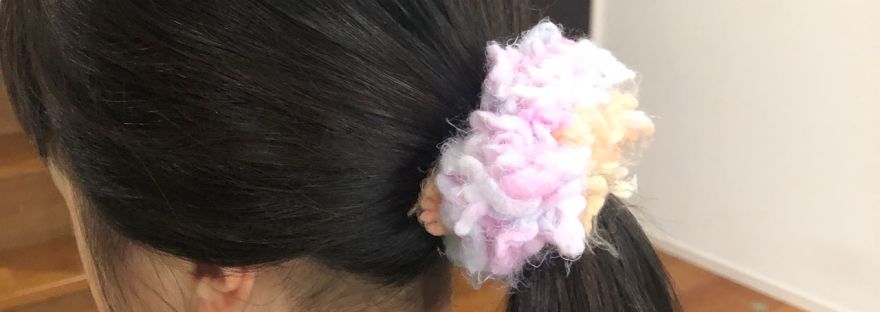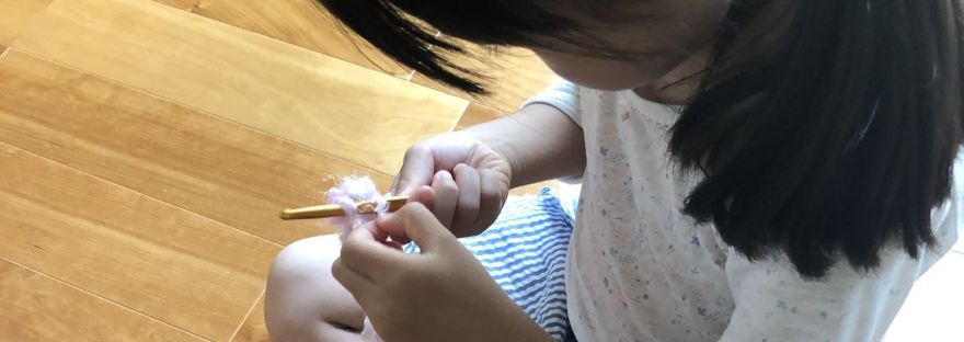 かぎ針という道具を使って、 気分が上がるモフモフの毛糸で、 お花を作ることができた5歳の娘。 「もっと作りたい… 続きを読む はじめてのシュシュ/5歳児の編み物